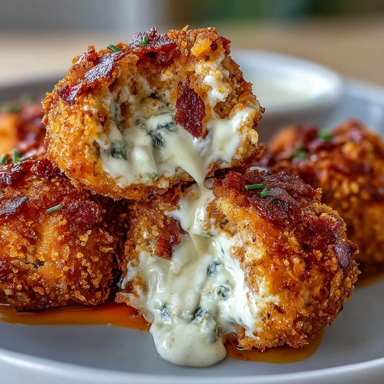 Save My cousin showed up one Saturday with a platter of these still warm from his kitchen, and I ate four before I even asked what was in them. The crunch gave way to molten cheese and spicy chicken that left my fingers sticky with buffalo sauce. He refused to share the recipe until I agreed to make them for his next party. That night I stood at my stove, shaping little chicken parcels around cheese cubes, wondering if Id ever get the seal tight enough. When the first batch hit the oil and turned golden without leaking, I texted him a photo with nothing but a thumbs up.