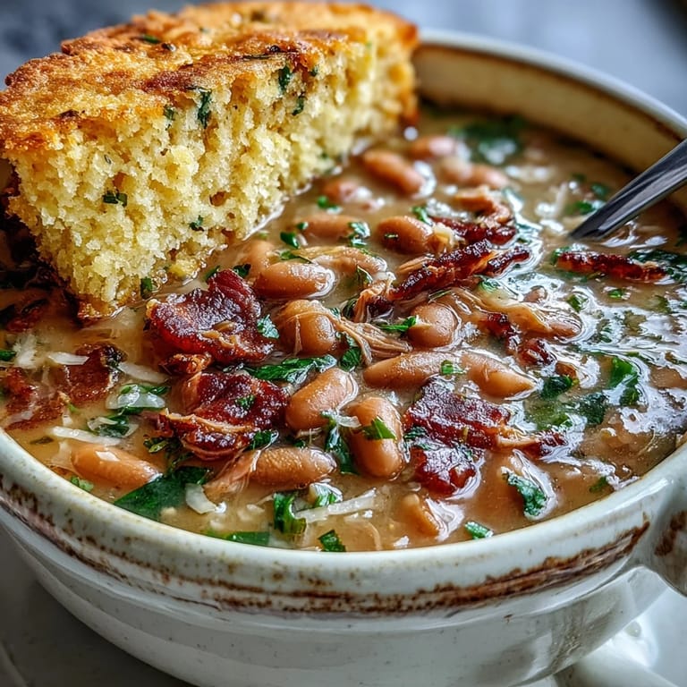Save My grandmother had a rule: when the weather turned cold, the ham hock came out. She'd set it simmering in the morning, and by afternoon, the whole kitchen smelled like smoke and home. I'd watch her stir those beans, adding pinches of this and that, never quite following a recipe but somehow always getting it exactly right. Years later, I finally understood what she was doing—building layers of flavor that made you forget about the world outside. This soup became my answer to those same gray days, paired with cornbread that's crispy on the edges and tender inside.