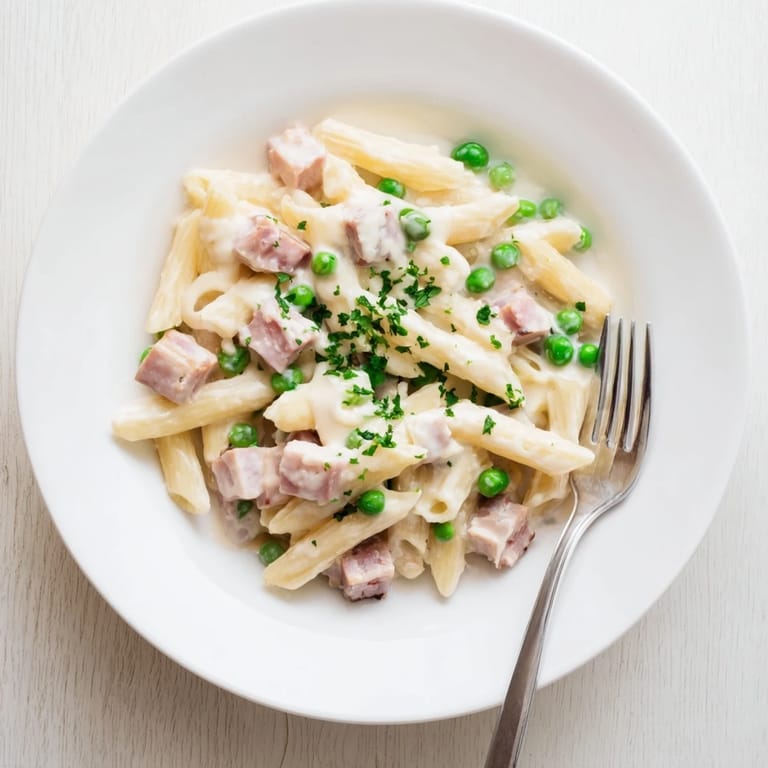 Save The first time I made this pasta was on a rainy Tuesday when I had leftover Easter ham taking up space in my fridge. Something about the way the sweet peas popped against the salty ham felt like discovering a secret combination hiding in plain sight. Now every time I see peas at the farmers market, I think of that cozy kitchen and the way the cream sauce made everything feel indulgent but simple.